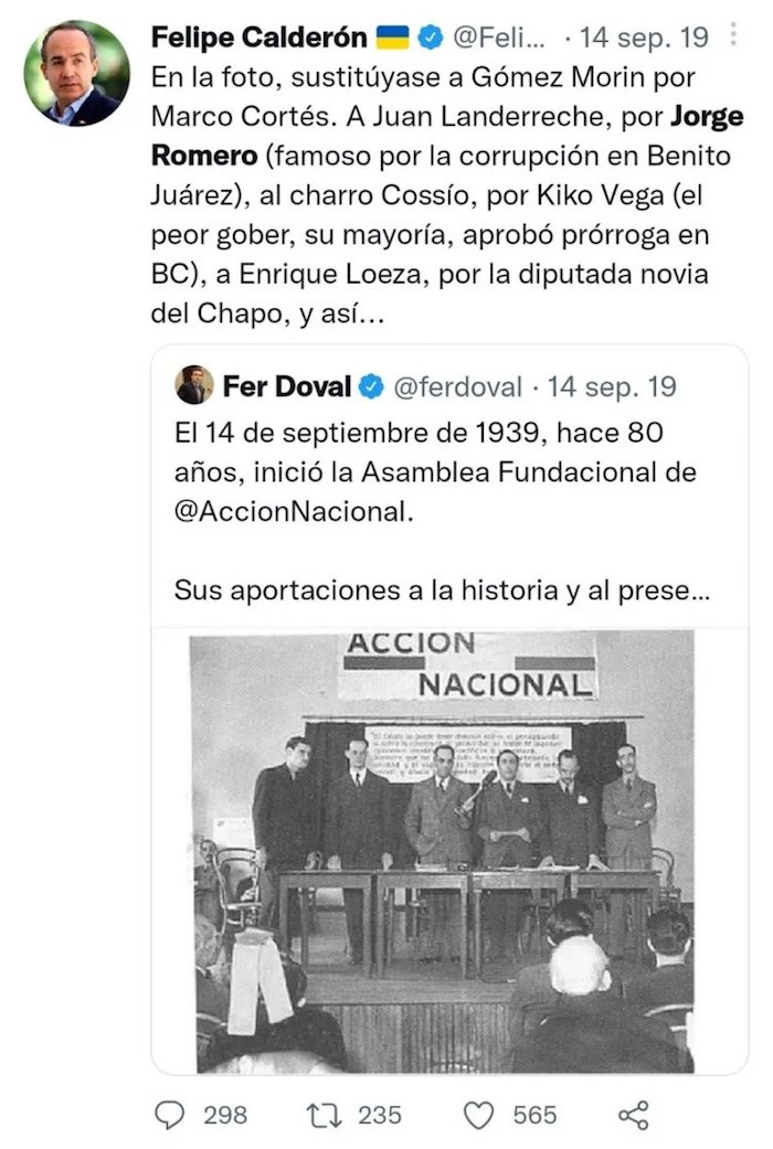 El mismo señalamiento lo ha hecho su esposo, Felipe Calderón Hinojosa, quien denunció a la cabeza del grupo político de Taboada y con quien inició el esquema del Cártel Inmobiliario: “Jorge Romero de la Ciudad de México, exdelegado en Benito Juárez, (es) famoso por los casos de corrupción que constantemente empresas extorsionadas revelaban. Un amigo suyo y sobrino mío me relató que dejó de trabajar con él cuando el propio Romero le confesó que asociaciones de ambulantes y otros le representaban a su grupo ganancias de 7 millones de pesos al mes”.