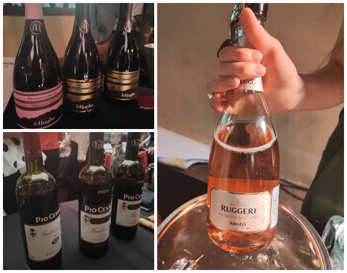 Entre los vinos que se pudieron degustar estuvo el Prosecco; Diego Vardanega de Freschi Bufano explicó que la región del Prosecco cuenta con DOC (Denominación de Origen Controlada). Como dato, esta DOC se creó en 2009 e incluye cinco provincias del Veneto, que son: Venezia, Padova, Treviso, Belluno; y cuatro del Friuli-Venezia Giulia: Trieste, Gorizia, Pordenone y Udine. Una gran reconendación es el vino Prosecco Rosé de LeRughe; otra recomendación es Ruggeri.