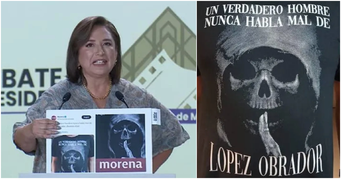 Lo cierto es que la prenda perteneciente a la colección de "calacas chidas", de la marca Camisetas Pendejas. Y aún cuando distintos personajes han salido a aclarar que solo se trata de un meme, la playera llegó incluso al debate presidencial, como un "arma" de la oposición contra el oficialismo. Xóchitl Gálvez, candidata de la coalición Fuerza y Corazón por México, mostró la imagen de la prenda durante su participación y sostuvo: