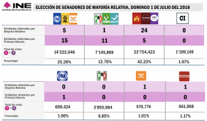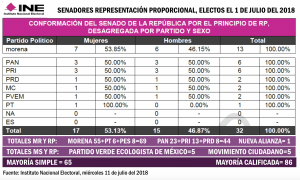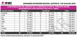 En el cierre de la actual legislatura del senado de la República, Morena termina fortalecido con la suma de los legisladores del Partido Verde, que en los comicios del 2018 compitió como aliado del PRI, pero terminó el sexenio como socio político de Morena. En los comicios del 2018 Morena y sus aliados PT y Partido Encuentro Social, sumaron 69 senadores; terminan el sexenio en 2024 con 74 senadores, todavía muy lejos de la mayoría calificada de 86 votos.