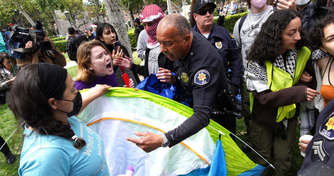 Tras un par de horas de escaramuzas entre manifestantes propalestinos y proisraelíes en la UCLA, policías con cascos y escudos formaron vallas y separaron lentamente a los grupos. Esto calmó la violencia y el lugar estaba tranquilo mientras amanecía. La UCLA canceló clases este miércoles e instó a la gente a evitar el área donde ocurrieron los enfrentamientos.