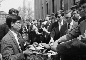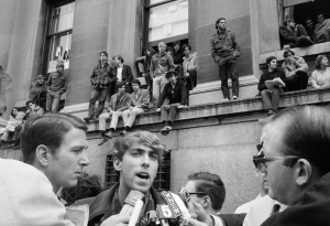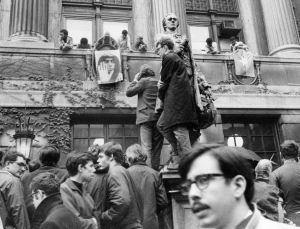 En abril de aquel año también se acercaba el final del ciclo escolar, cuando los estudiantes tomaron cinco edificios del campus. Había varios motivos. Algunos protestaban contra la relación de la universidad con un instituto que hacía investigación armamentística para la guerra de Vietnam; otros se oponían a la forma en que la elitista escuela trataba a los residentes negros y de otras minorías raciales en las comunidades aledañas a la institución, así como el ambiente que vivían los estudiantes pertenecientes a minorías.
