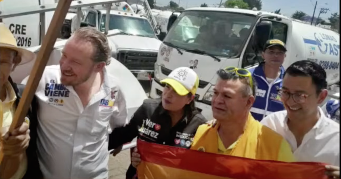Mientras los asistentes ondeaban banderas impresas con la imagen del PAN y se veían pasar a taxis y camiones con stickers de un gallo, que es el logotipo de Grupo Fortaleza, Valadez refrendaba su apoyo a Taboada, bajo el argumento de que Morena, partido gobernante en dicha Alcaldía, durante años nunca les proporcionó seguridad, salud, ni calidad de vida.
