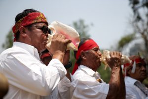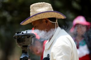 México, 6 de mayo (Xinhua).- El resoplar del caracol ceremonial "atecocolli" marcó el ritual a cargo de miembros de pueblos originarios de México para pedir a Tláloc, el dios de la lluvia entre pueblos prehispánicos, que conceda la llegada del agua ante la severa sequía que enfrenta el país y que no permite que los sembradíos prosperen.