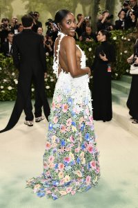 Los invitados tienen la opción de ver la exposición o ir directamente a los cócteles, la mayoría eligió lo segundo. Pero algunos sí acudieron a las salas de la muestra, una experiencia de moda multisensorial que involucra no sólo la vista, sino también el oído, el olfato y el tacto. Lena Waithe pasó tiempo sola inspeccionando las prendas y dijo que estaba “impresionada por el trabajo”.