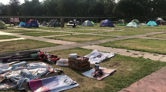 Desde la acampada de la UNAM, las y los manifestantes se suman a ese llamado. Entre las casas de campaña se observan banderas como la de la comunidad LGBTIQ+, y de otras universidades como el Instituto Politécnico Nacional (IPN).