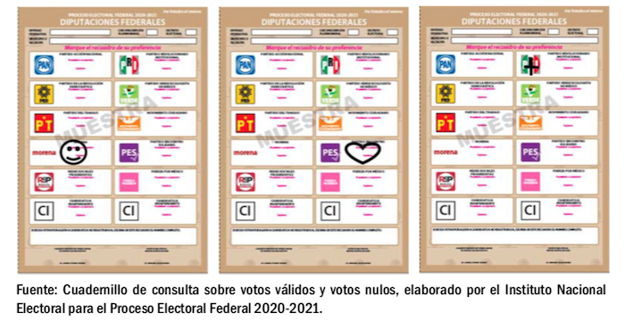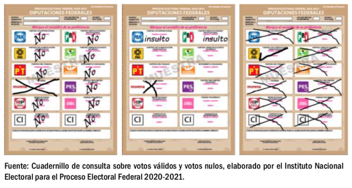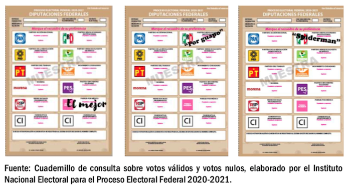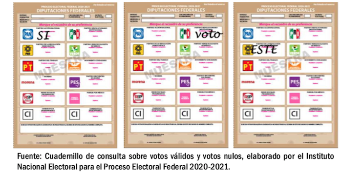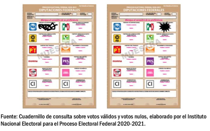 En el Cuadernillo de Consulta Sobre Votos Válidos y Votos Nulos, elaborado por el Instituto Nacional Electoral para el Proceso Electoral Federal 2020-2021, se explican en detalle los criterios para la valoración de los votos nulos y los votos válidos.
