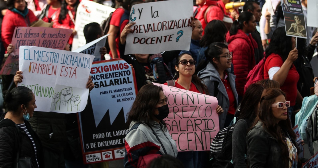 El Presidente Andrés Manuel López Obrador (AMLO) dio a conocer esta mañana que habrá un nuevo aumento salarial para las y los docentes del país, el cual representaría un 10 por ciento más en comparación al año pasado. Sin embargo, durante las movilizaciones de esta tarde, la CNTE lo calificó como insuficiente. "Representa apenas unos cuantos pesos más, y es una burla decir que vamos a ganar 17 mil 300 pesos, cuando eso está muy lejos de lo que gana realmente un docente con plaza inicial", señaló el Secretario general de la Sección IX de la CNTE, Pedro Hernández.