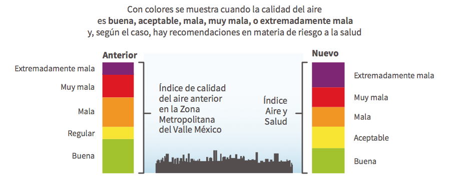 Este Índice Aire y Salud homologó el cálculo y la difusión de los niveles de contaminación en México y se convirtió en observancia obligatoria en todas las zonas metropolitanas, ciudades y municipios del país que cuenten con estaciones de monitoreo de calidad del aire.