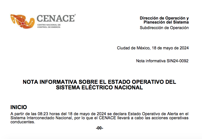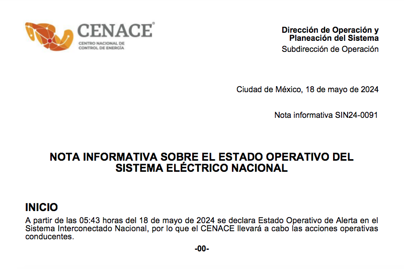 — CenaceMéxico (@CenaceMexico) May 18, 2024