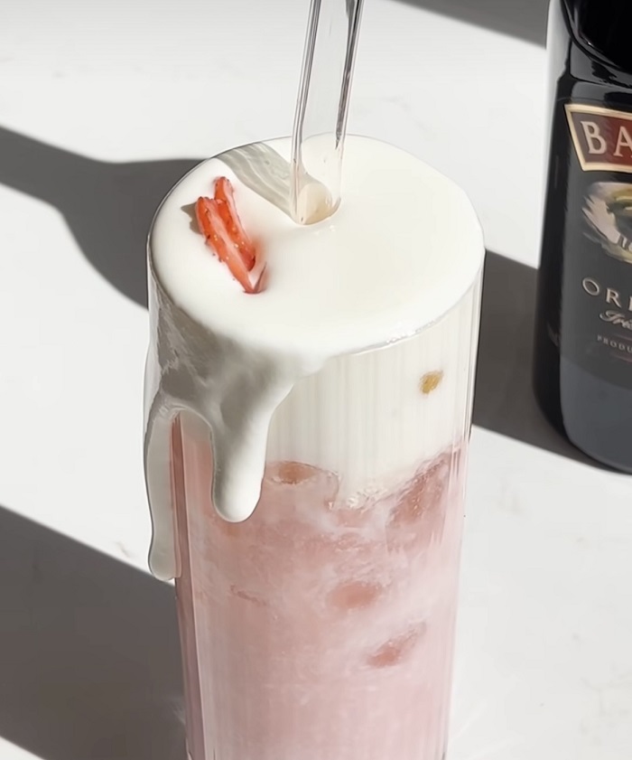 -En un shaker se vierte la leche de coco, la crema para batir y el Baileys Original, se shakea y la mezcla se vierte en el vaso alto cristal.