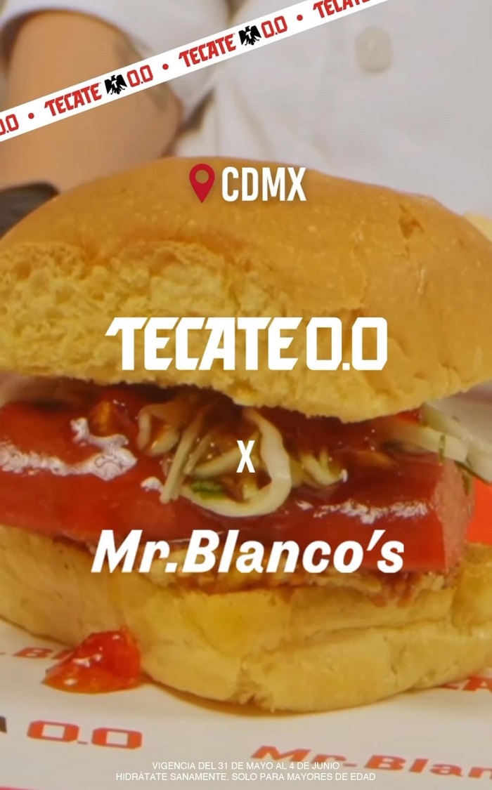 La marca se ha posicionado como la cerveza sin alcohol ideal para acompañar todas las comidas, bajo esta premisa, se unió con Mr. Blanco's, la cadena con las sliders más originales, para ofrecer en todas sus sucursales de la Ciudad de México, una opción hecha con salchicha y col, acompañada de una deliciosa salsa de Tecate 0.0.