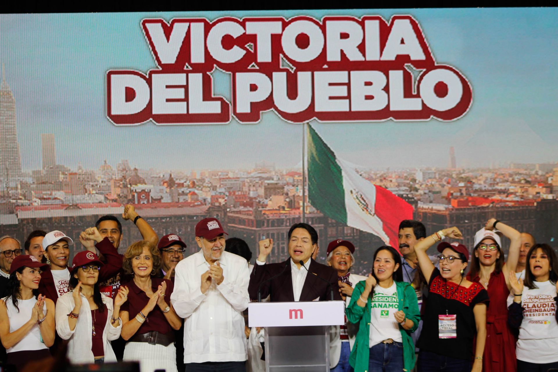 Mario Delgado Carrillo, dirigente nacional de Morena, celebró el triunfo de Claudia Sheinbaum Pardo a la Presidencia de México, quien, aseguro, se impuso “dos a uno” sobre Xóchitl Gálvez Ruiz, candidata del PRI y PAN e indicó que el oficialismo le cerró la boca “a una oposición diminuta”.