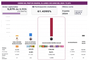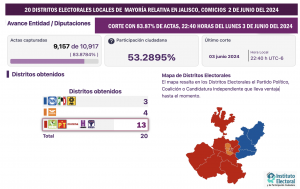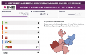 Sólo en el caso de Jalisco el margen entre el primero y el segundo lugar fue muy estrecho, al cierre de los programas de resultados electorales preliminares, este lunes 3 de junio del 2024. Con excepción de Chiapas, fue el PREP que operó el Instituto Electoral de Jalisco el que experimentó mayor retraso y morosidad, desde el mismo día de los comicios, pues empezó a cargar datos hasta las 22:00 horas, cuando el tiempo establecido para operar esa herramienta estaba fijado para las 20:00 horas.