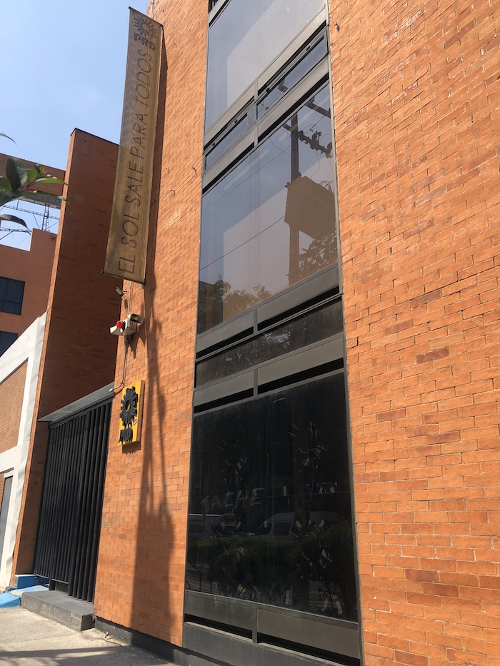 Ahora, entre las rejas negras cerradas apenas se alcanza a leer el lema del partido escrito en una pared amarilla con letras negras: “Democracia ya. Patria para todas y todos”.