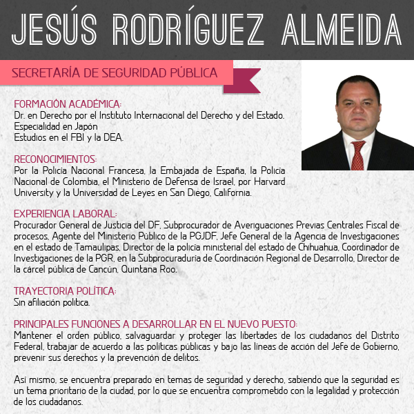 *Secretaría de Seguridad Pública del Distrito Federal .Jesús Rodríguez Almeida, deberá ser ratificado por el presidente de Enrique Peña Nieto.