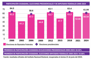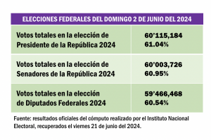 El financiamiento a los partidos políticos debería calcularse con base en el número de votos reales que en conjunto hubiesen logrado esas organizaciones en los comicios inmediatamente anteriores, sobre los votos recibidos en las urnas, sobre el respaldo que realmente les otorgue la ciudadanía, y no sobre el total del Padrón Electoral, pues a las urnas no acude el 100 por ciento de los ciudadanos que tienen o solicitaron una credencial de elector. En los comicios presidenciales del pasado domingo 2 de junio del 2024 votó el 61.04 por ciento de los ciudadanos inscritos en la Lista Nominal de Electores; acudió a las urnas el 60.95 por ciento en las elecciones de senadores y emitió su sufragio el 60.54 por ciento en los comicios de Diputados Federales.