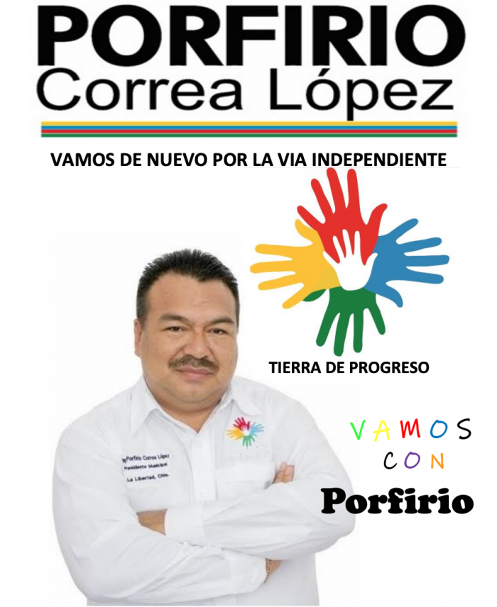 Porfirio Correa López ya era Alcalde desde las elecciones de 2021 y tomó protesta el 1 de octubre de ese año. En diciembre de 2023 pidió licencia para buscar la reelección, nuevamente como independiente. Antes de ocupar este cargo, se desempeñaba como Secretario de la Unión de taxis "Los Guadalupanos". Además, cuenta con más de 20 años de experiencia en consultoría y gestión de proyectos y recursos para el desarrollo de proyectos productivos, especialmente en el desarrollo del campo. Fue presidente de la Unión de productores de palma de aceite de La Libertad y actualmente es secretario de la Unión de taxis "Los Guadalupanos".