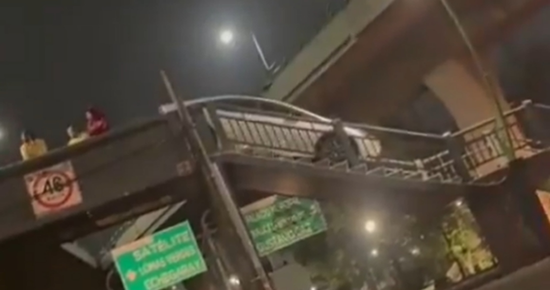 Ayer, un #conductor trató de atravesar el puente peatonal que se encuentra sobre Periférico Norte, cerca del Palacio Municipal de #Naucalpan. pic.twitter.com/ILMdtMDm5T