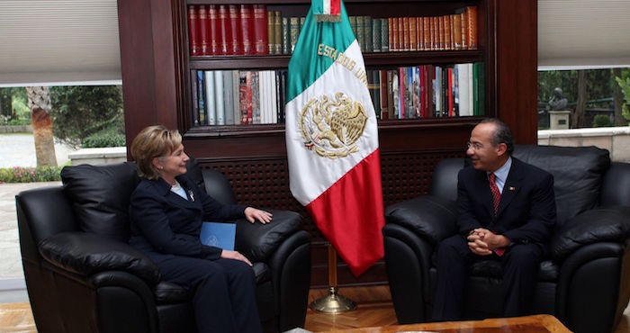 Hillary Clinton, exsecretaría de Estado de EU, y Felipe Calderón Hinojosa, expresidente de México. Foto: Alfredo Guerrero, Cuartoscuro.