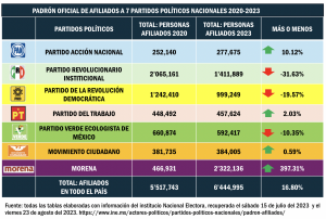 En general todos los partidos políticos, con excepción de Morena, han tenido un fuerte desgaste en los más recientes tres años, o en su caso, el crecimiento de sus membresía ha sido muy pobre.