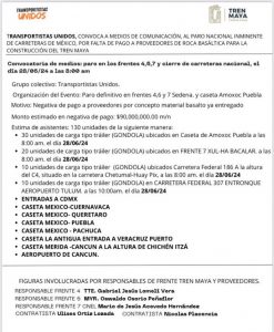 Estas acciones se debían al paro nacional al que convocaron por la falta de pago por la roca basáltica utilizada en la construcción del Tren Maya.