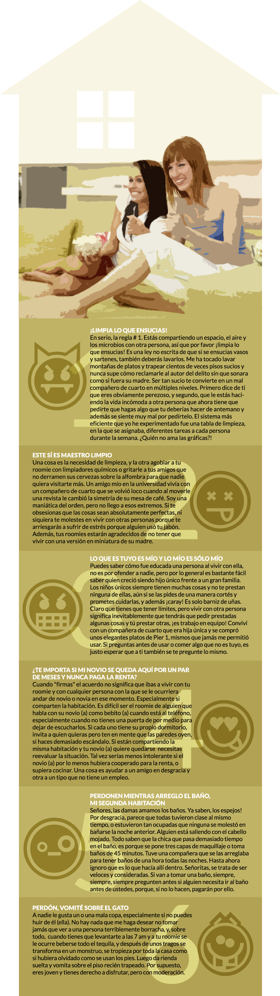 Nos hemos imaginado con nuestros roomies, como en un episodio de la famosa serie de los noventas "Friends". Pero no siempre será así. Es fácil olvidar, en nuestro entusiasmo de vivir nuestra propia independencia, que habrá que lidiar con gente difícil. Pero, después de cinco ex compañeros de cuarto, tal vez te encuentres preguntándote a ti mismo: "¡¿Probablemente he sido yo el del problema todo el tiempo?!". Con el siguiente listado checa si realmente estás preparado para vivir con otras personas.
