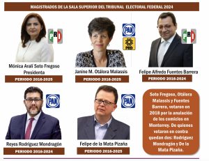 Los magistrados que el 31 de octubre del 2018 anularon los comicios para la alcaldía de Monterrey fueron, la entonces presidenta de la Sala Superior del Tribunal Electoral del Poder Judicial de la Federación, Janine M. Otálora Malassis y los magistrados Mónica Aralí Soto, Felipe Alfredo Fuentes Barrera y José Luis Vargas Valdez. Votaron en contra de la anulación los magistrados electorales Felipe de la Mata Pizaña, Indalfer Infante González y Reyes Rodríguez Mondragón. Tres de los magistrados que en 2018 anularon los comicios en Monterrey siguen en la Sala Superior del Tribunal: Mónica Aralí Soto Fregoso, quien ahora lo preside, así como Felipe Alfredo Fuentes Barrera y Janine M. Otálora Malassis. Dos magitrados que se opusieron a la anulación siguen siendo minoría: Felipe de la Mata Pizaña y Reyes Rodríguez Mondragón.