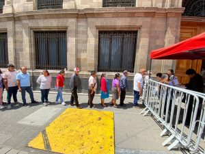 Los familiares comenzaron a llegar a la Puerta 1 del recinto, ubicada en la calle de Moneda, para ingresar al segundo encuentro que se realiza con el Presidente López Obrador este año.