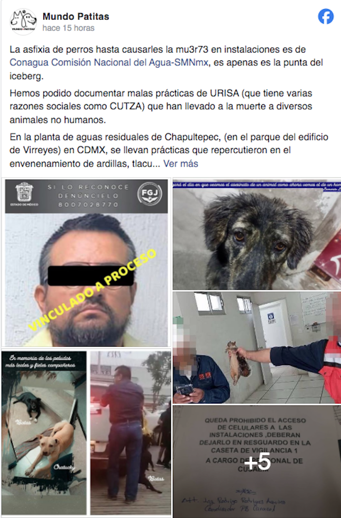 La organización Mundo Patitas denunció el asesinato de seis canes, hechos que se habrían registrado el pasado 6 de junio a manos de un empleado de Proyectos y Construcciones Urisa S.A. de C.V., una empresa contratada por la Conagua para operar una planta en Ixtapaluca.