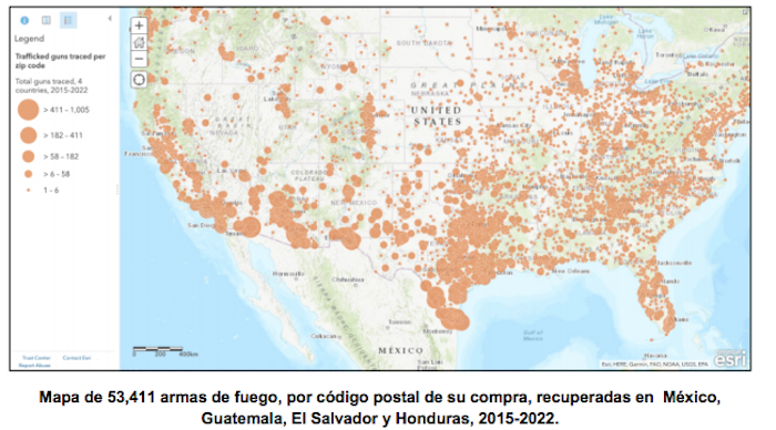 “Estos calibres no son legales para la compra civil en México o Centroamérica; tales armas ilícitas son mayormente compradas en y traficadas desde Estados Unidos, o exportadas legalmente y desviadas al mercado ilícito. En resumen, el problema del mercado de armas de asalto en Estados Unidos es más presente y fuerte en México y Centroamérica”, refiere el reporte.