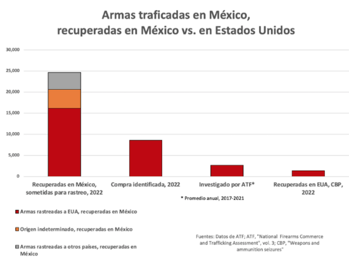 Y añade, en una cita con datos que atribuye a la ATF: “Las armas son bienes duraderos: su funcionalidad para destruir las vidas dura por muchos años. El tiempo promedio entre la compra de un arma en los Estados Unidos y su recuperación en México es de siete años”.
