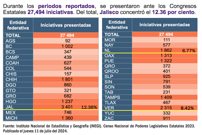 Finalmente, ubica cuáles son los congresos estatales más productivos, entre los cuales destacan Jalisco, Veracruz y Nuevo León.