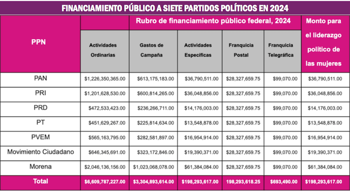 En 2025 habrá más dinero que en 2024 para el sostenimiento de las actividades ordinarias de los partidos políticos y además, el pastel tendrá que repartirse sólo entre seis invitados, pues el Partido de la Revolución Democrática, al perder su registro, quedará fuera de esta fiesta del desenfreno presupuestal.
