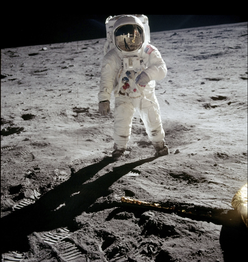 Aldrin siguió a Armstrong al exterior de la Luna, pronunciando "Magnífica desolación". Pasaron poco más de dos horas pisando la polvorienta superficie, antes de regresar a su módulo lunar y despegar para volver a conectarse con Collins, el piloto del módulo de mando que había permanecido en órbita lunar.