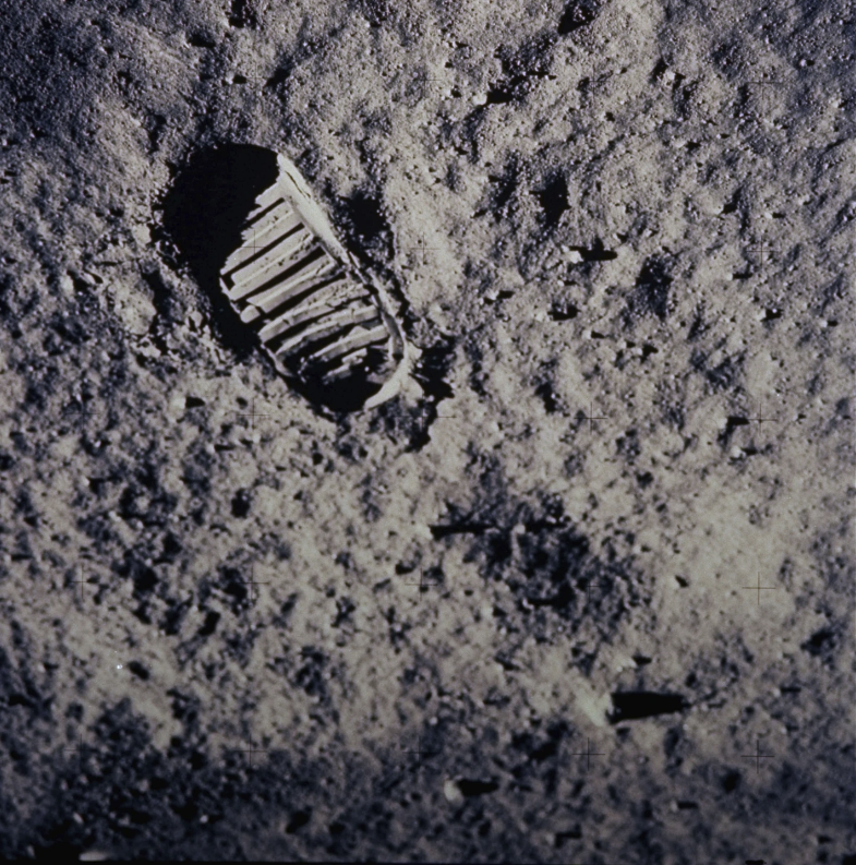 La huella dejada por uno de los astronautas de la misión Apolo 11 se ve en la suave y polvorina superficie de la Luna el 20 de julio de 1969. Foto: NASA, vía AP.