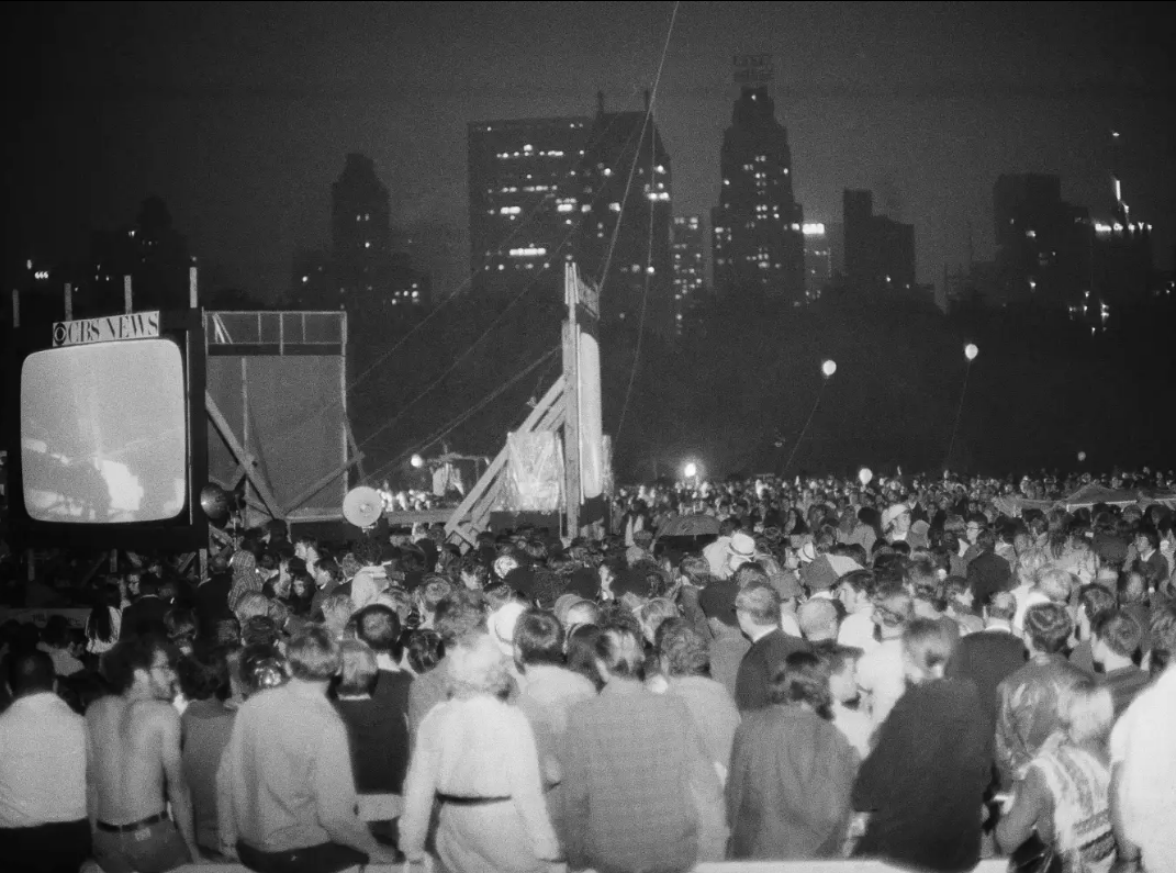 Una multitud observa pantallas gigantes de televisión en el Central Park de Nueva York el 20 de julio de 1969, mientras la tripulación apolo 11 camina sobre la Luna. Foto: Marty Lederhandler, AP.