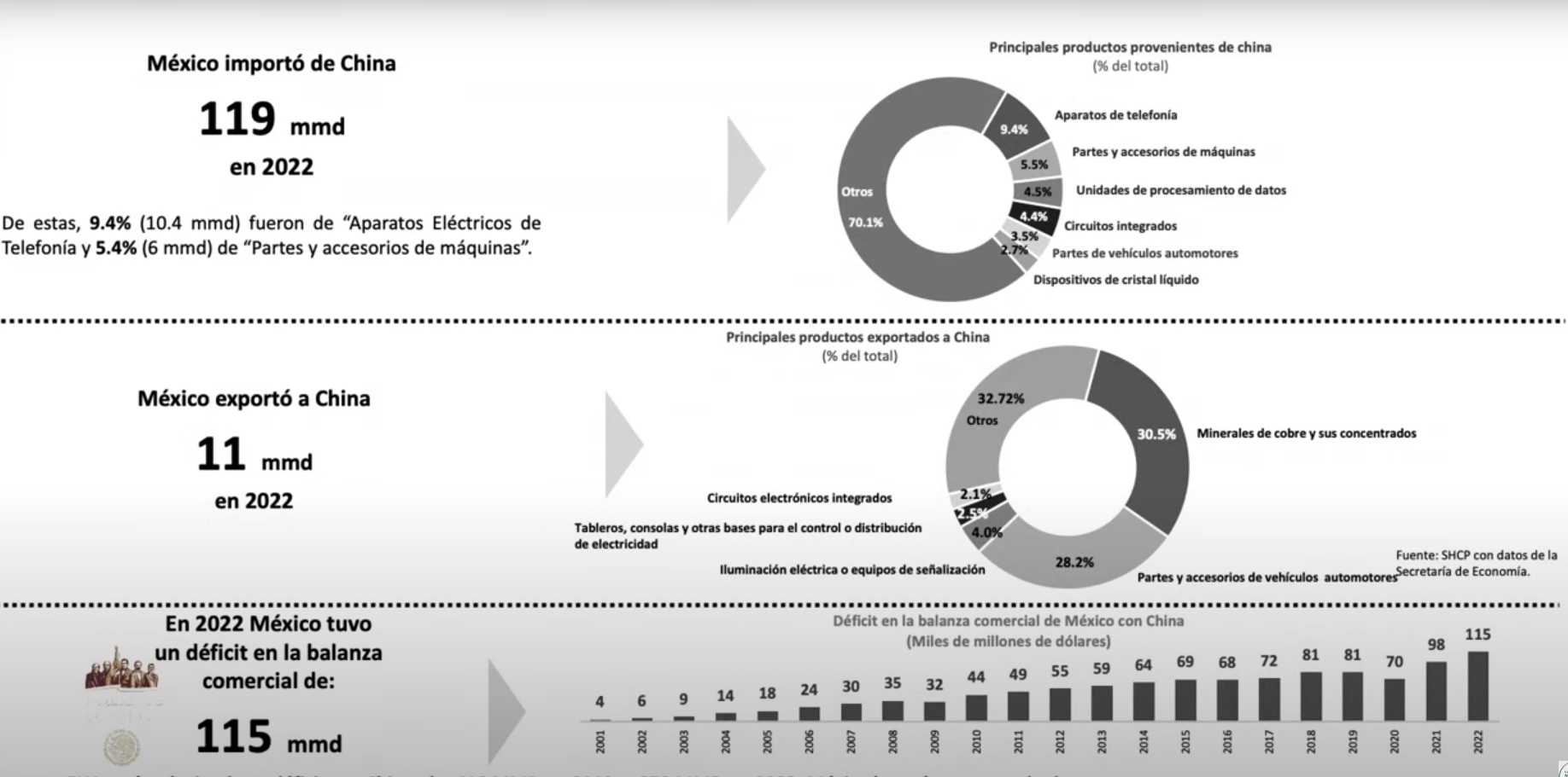 “México tiene que hacer su propia revisión con China, ellos nos venden 119 mil millones de dólares por año y nosotros les vendemos 11 mil millones, China nos vende y no nos compra y eso no es un comercio recíproco”, consideró Rogelio Ramírez de la O, titular de la Secretaría de Hacienda, que repetirá el cargo en el próximo sexenio.
