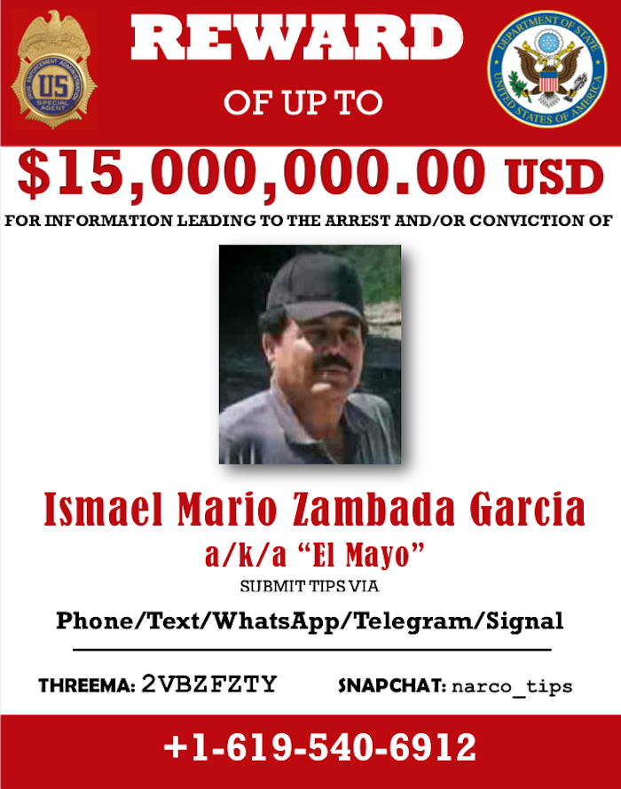 La ficha de recompensa por "El Mayo", capturado este jueves. Foto: DEA