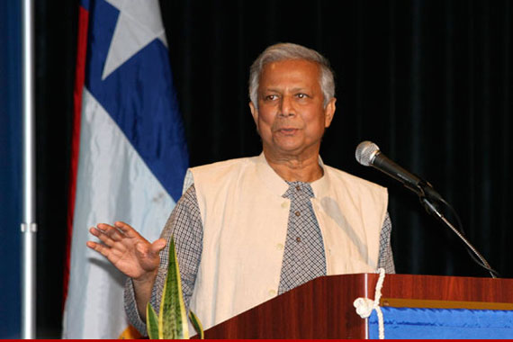 En 1976 en el pueblo de Jobra, Yunus vio que algunas mujeres fabricaban objetos de bambú, el capital para tal actividad salía de préstamos que hacían los usureros de la zona, los intereses se comían con el tiempo las ganancias y los beneficios de esa actividad económica se esfumaban. De su bolsa, Yunus prestó a cuatro decenas de mujeres lo que hoy sería el equivalente a unos 360 pesos. Así estableció los cimientos del Grameen Bank especializado en microcréditos: préstamos pequeños a personas pobres sin la exigencia de garantías de por medio. Un sistema basado en la solidaridad y la participación comunitaria.
