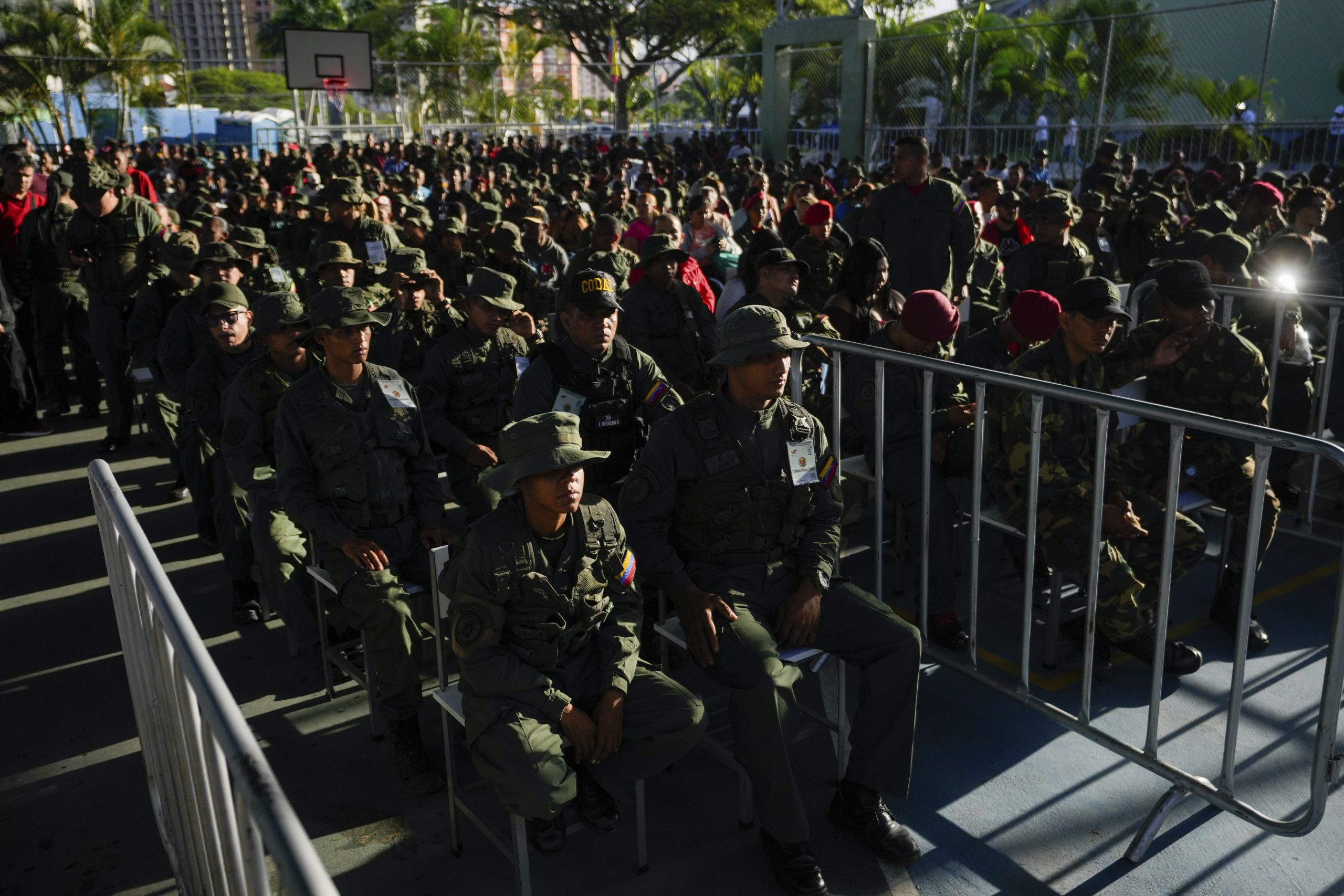 Personal militar espera su turno para votar en las elecciones presidenciales en Fuerte Tiuna en Caracas, Venezuela, el domingo 28 de julio de 2024. Foto: Fernando Vergara, AP.