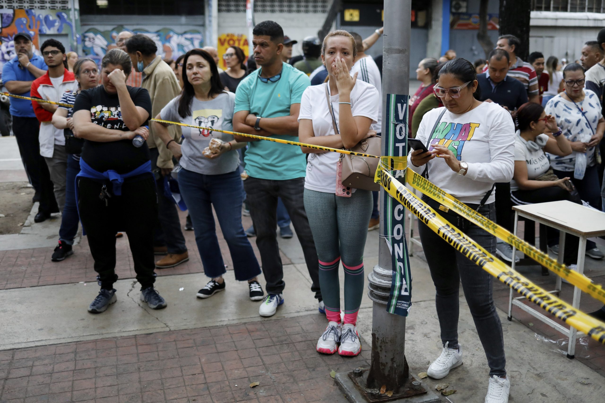 Votantes hacen fila durante las elecciones presidenciales en la Escuela Andrés Bello, el principal centro de votación en Caracas, Venezuela, el domingo 28 de julio de 2024. Foto: Cristian Hernández, AP.