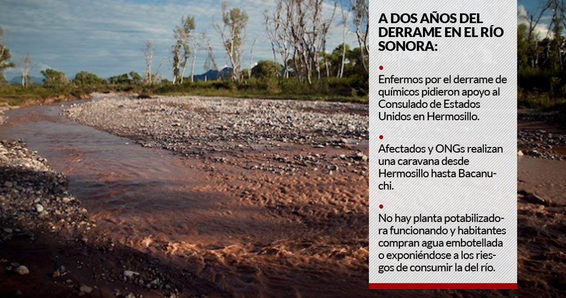 El 6 de agosto de 2014, después de unas fuertes lluvias, 40 millones de litros de aguas residuales con sulfato de cobre acidificado se desbordaron desde un depósito de relaves en la mina Buenavista del Cobre, que se localiza en el municipio de Cananea, hasta los ríos Sonora y Bacanuchi, a poco menos de 100 kilómetros de la ciudad de Nogales, Sonora.