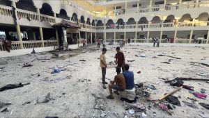 “Había gente rezando, había gente lavando y gente durmiendo en el piso de arriba, incluyendo niños, mujeres y ancianos”, añadió. “El misil cayó sobre ellos sin previo aviso. El primer misil y el segundo. Los sacamos en pedazos”.