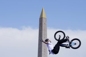 El argentino José Torres hace una pirueta durante la final del BMX freestyle de los Juegos Olímpicos de París, el miércoles 31 de julio de 2024. Foto: Frank Franklin II, AP