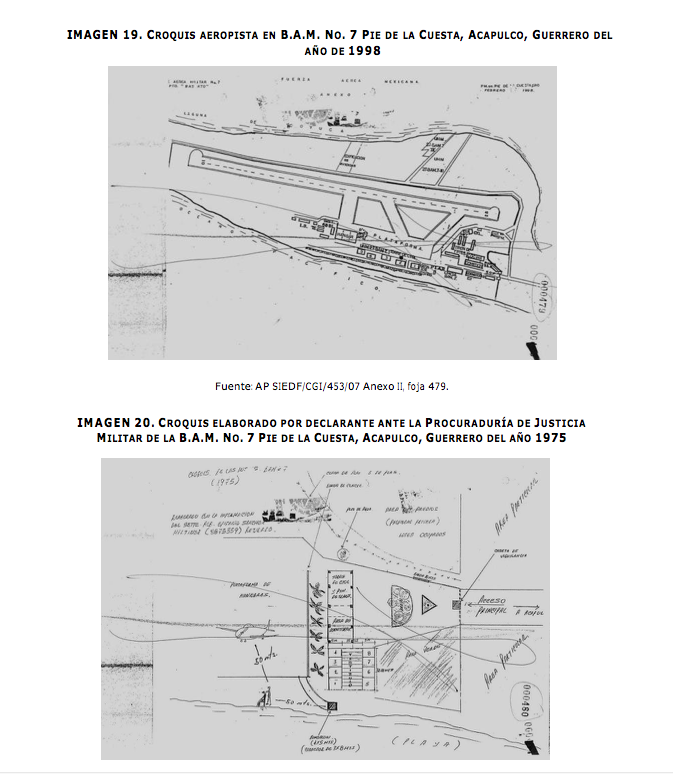 Los documentos y testimonios recabados por el Mecanismo destacan que el trasladar deliberadamente en aeronaves a personas detenidas de manera arbitraria para, desde las alturas, aplicar técnicas de tortura o deshacerse de cadáveres de personas previamente ejecutadas en prisiones clandestinas o durante enfrentamientos con elementos de seguridad o defensa estatales, es una práctica de origen militar documentada en estados como Chiapas, Durango, Guerrero, Jalisco, Oaxaca, Sinaloa y Veracruz durante el periodo de 1965 a 1990 y en años posteriores.