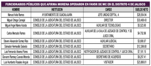 Respecto a la elección de Gobernador de Jalisco, Morena considera que “existió una intervención indebida en cuestiones electorales a favor de Movimiento Ciudadano y su candidato por parte de cientos de servidores públicos que trabajan para el gobierno del estado de Jalisco y para diversos municipios cuyos ayuntamientos emanaron de las filas del mencionado instituto político, circunstancia que supone una grave violación a los principios de imparcialidad, neutralidad y equidad tutelados por el principio [artículo] 134 constitucional”.