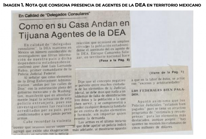“Es imposible establecer un vínculo entre la injerencia de instituciones de seguridad estadounidenses y las graves violaciones a los derechos humanos sin considerar el papel de complicidad que jugó el Estado mexicano. Es esta complicidad la que lleva los crímenes cometidos por los agentes estadounidenses a la esfera de los derechos humanos, pues ocurrieron bajo la aquiescencia del Estado mexicano, cuando no en coparticipación. La primera puerta de entrada al despliegue de sus operaciones estaba condicionada por los vínculos que establecían con la Policía Judicial Federal”, detalla el texto.