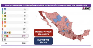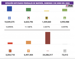 El acuerdo tomado por el Consejo General del Instituto Nacional Electoral, desde el 7 de diciembre del 2023 es que la base de referencia para la asignación de diputados de Representación Proporcional, los llamados Plurinominales, debe ser la votación que cada partido político, en lo individual, obtuvo en los comicios del pasado domingo 2 de junio del 2024, en las votaciones para legisladores de Mayoría Relativa. Así se hizo en el 2018 y en el 2021, y así se hará en el 2024.