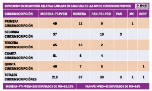 Las reformas constitucionales que impulsa el presidente de la República podrían ser votadas y aprobadas por la renovada Cámara de Diputados en septiembre próximo. Proponen: “La Cámara de Diputados quedaría conformada por 300 curules, es decir, se eliminarían 200 diputaciones plurinominales; aunque en ningún caso la representación de una entidad federativa puede ser menor de dos diputados. Por su parte, el Senado de la República quedaría integrado por 64 escaños; la mitad de los que actualmente tiene. De igual modo, serían elegidos de manera directa y secreta por la ciudadanía mediante el sistema de mayoría relativa por entidad federativa, correspondiendo dos escaños por cada estado. Asimismo, se propone que los Congresos de las entidades federativas se integren por diputadas y diputados electos de manera directa y secreta conforme al sistema de mayoría relativa”.